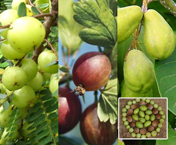「トリファラ」は「三つの果実(トリ=三、ファラ=果実)」を意味し、以下の3種の果実から成るブレンドです。