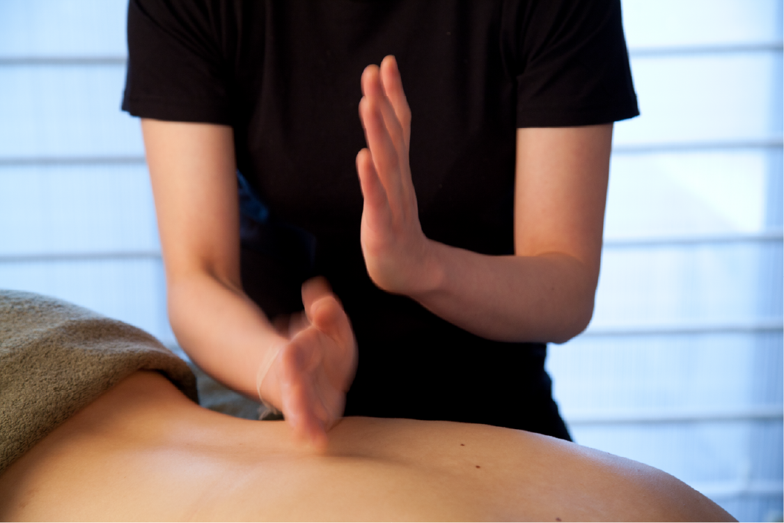 指の腹をつかって、細かく行うことで、深層部の筋肉をほぐし、身体を温める